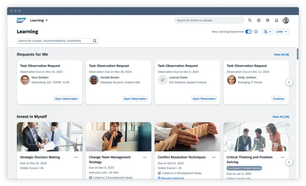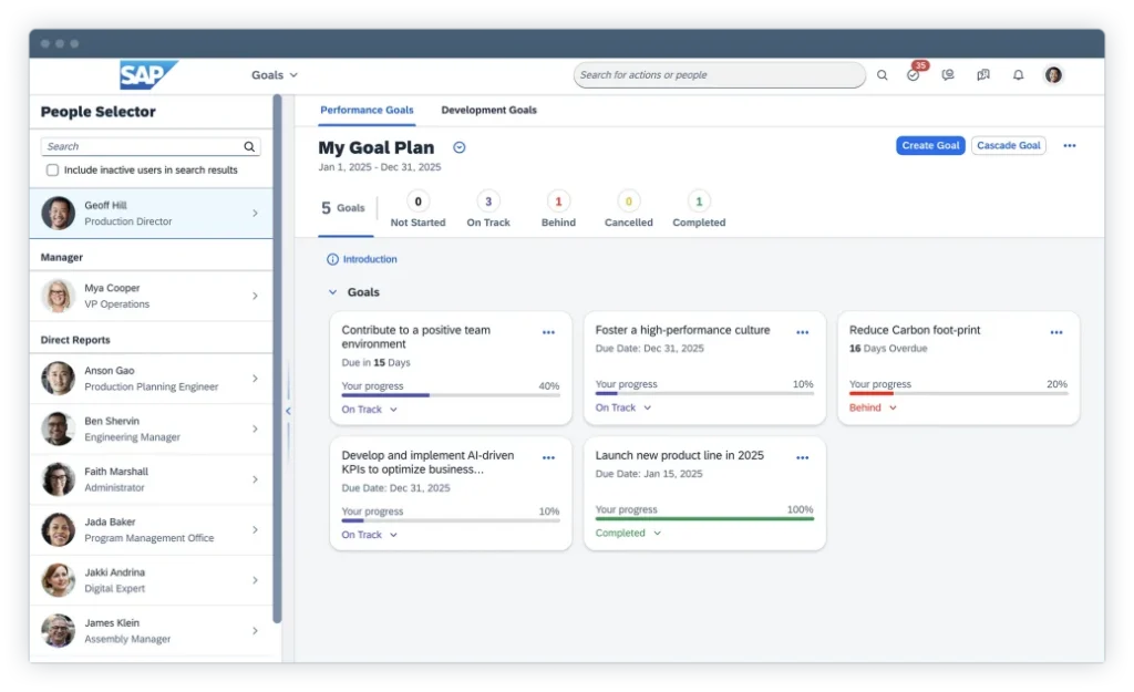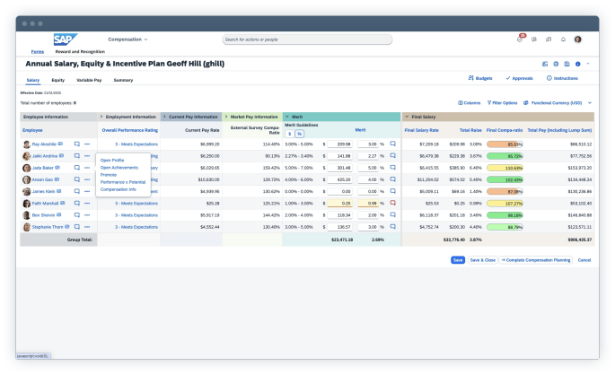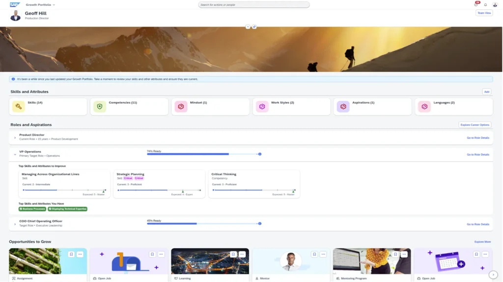 SAP SuccessFactors te permite identificar, desarrollar y retener el talento para planificar estratégicamente las sucesiones y ofrecer oportunidades de desarrollo personalizadas para cada colaborador.